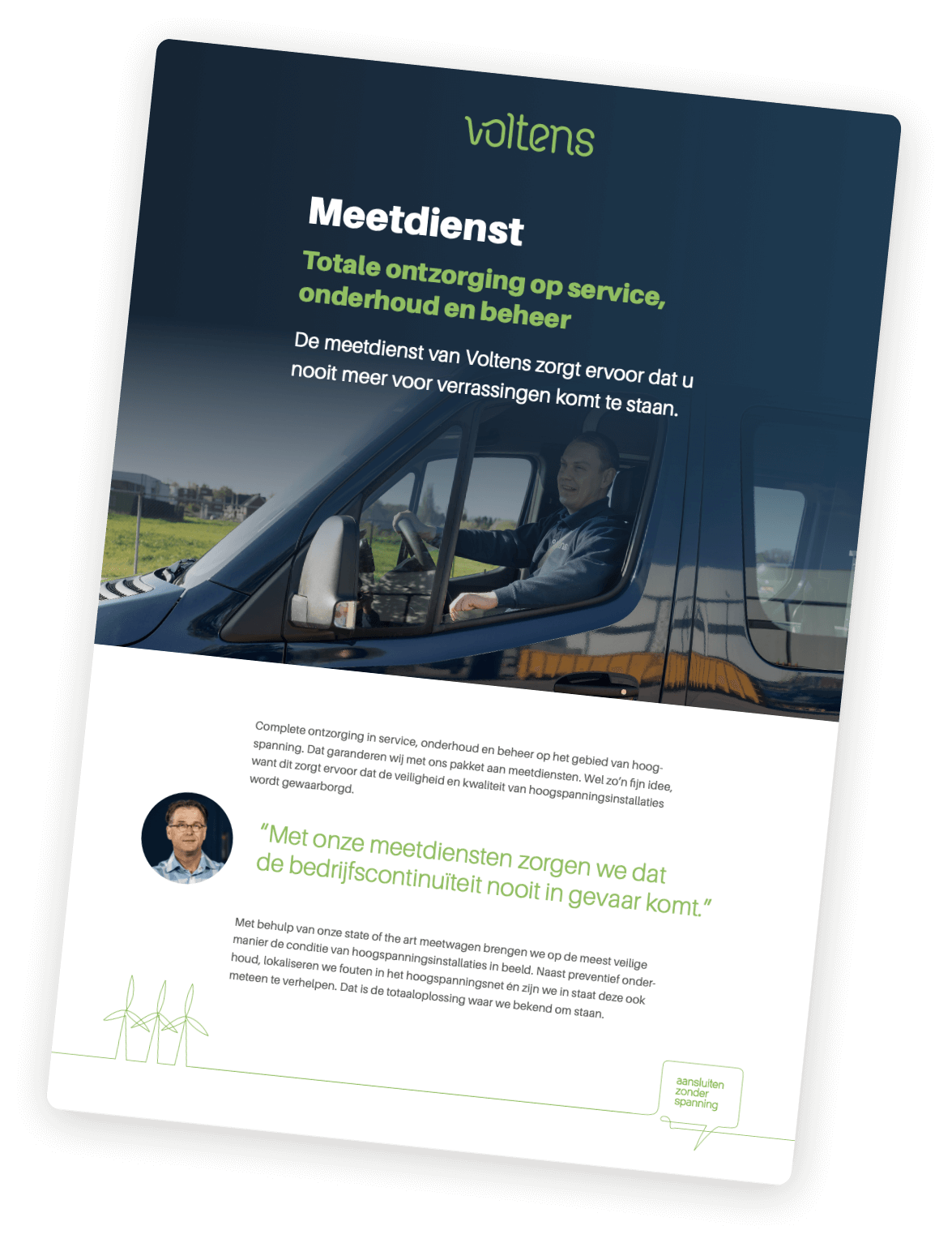 De dienstenpagina bevat gedetailleerde informatie over de voordelen en mogelijkheden van de meetwagen. Om alle ins en outs van de kabelmeetwagen te weten te komen, ging hier een uitgebreid interview met de experts van Voltens aan vooraf.